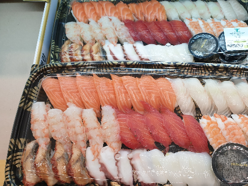 패밀리 초밥은 연어, 광어, 한치, 새우, 장어, 문어 등의 조합이고, 프리미업 초밥은 연어, 참돔, 광어 등의 구성으로 이루어져 있습니다. 아무래도 프리미엄은 진정한 회초밥으로만 구성되어 패밀리초밥의 갯수 대비 가격이 비쌉니다. 홈파티로는 다양하게 구성할 수 있는 패밀리 초밥을 추천 드립니다.