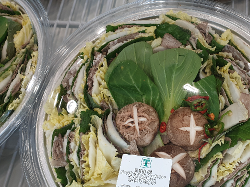 3~4분정도 드시기 적당한 양이고, 많이 드시는 분이 있다면 차돌박이는 필히 추가하셔서 드시기 바랍니다. 다른 샤브샤브 재로들 넣어서 드셔도 좋구요, 칼국수도 따로 구입하셔서 넣어먹는것을 추천 드립니다. 살짝 아쉬운 부분은 밀푀유나베의 고기가 다 익혀져 있는 상태라 고기가 다소 퍽퍽한감이 없지 않습니다. 하지만 차돌박이나 대패삼겹을 따로 구입하여 넣어드시면 아주 맛있습니다.